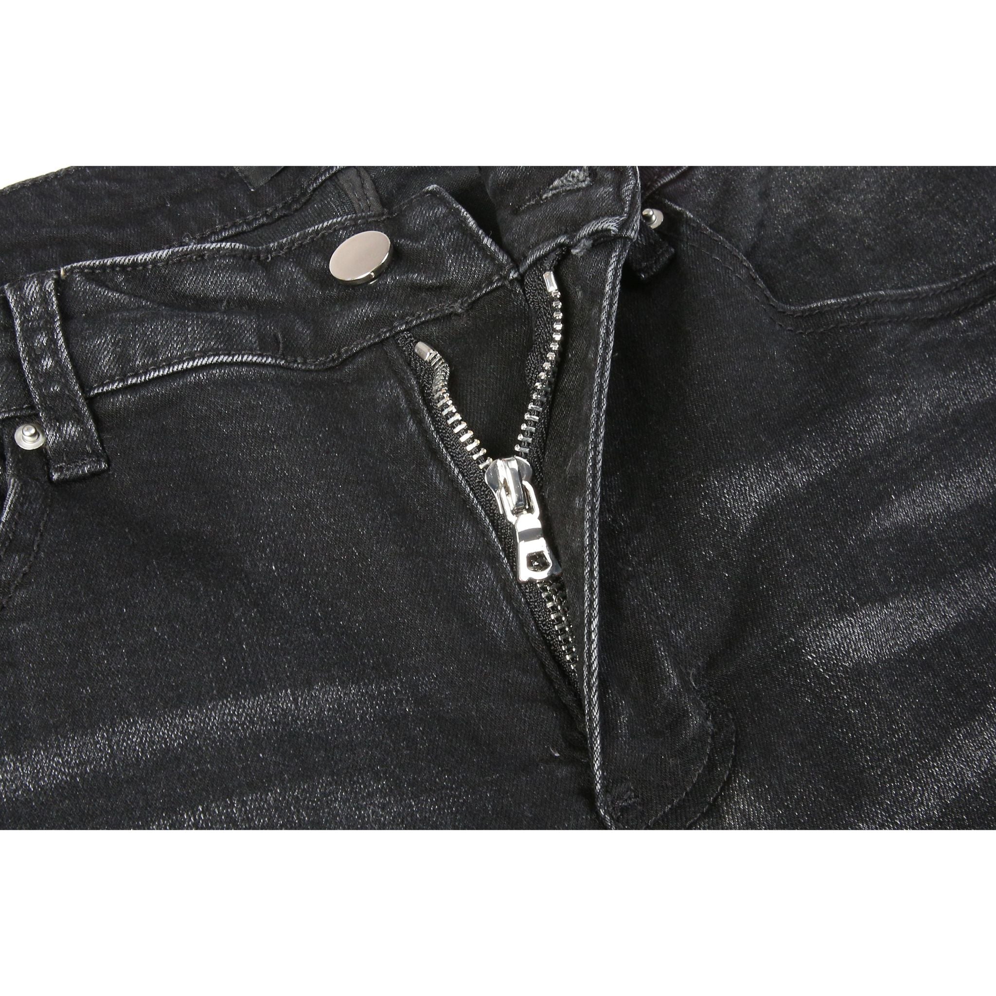 - Denim nero lavato con dettagli baffati, cosce lavate, nido d'ape