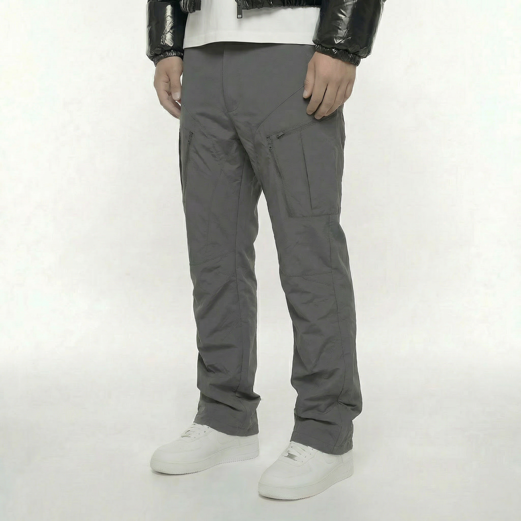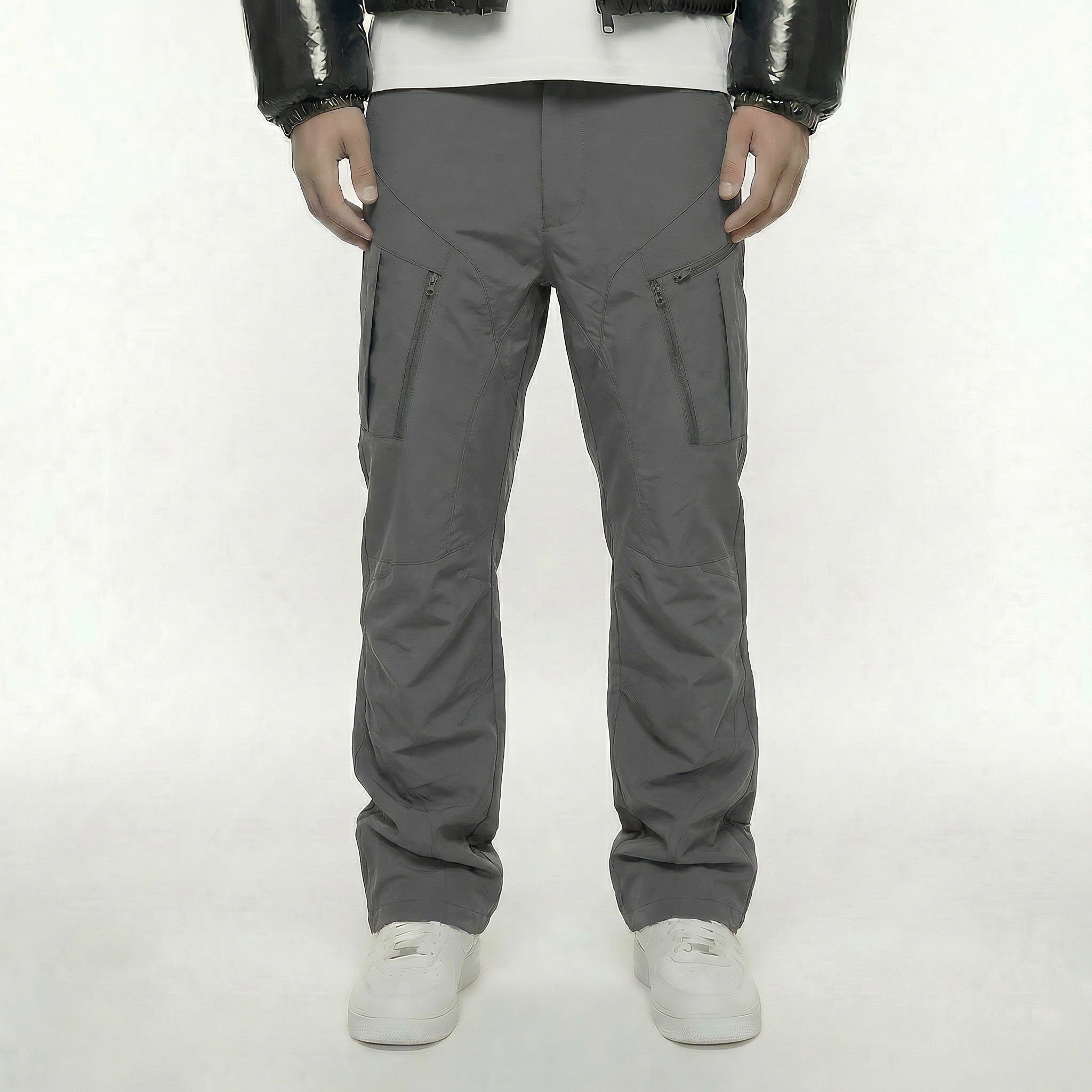 • cerniere all'apertura delle gambe per una vestibilità svasata.