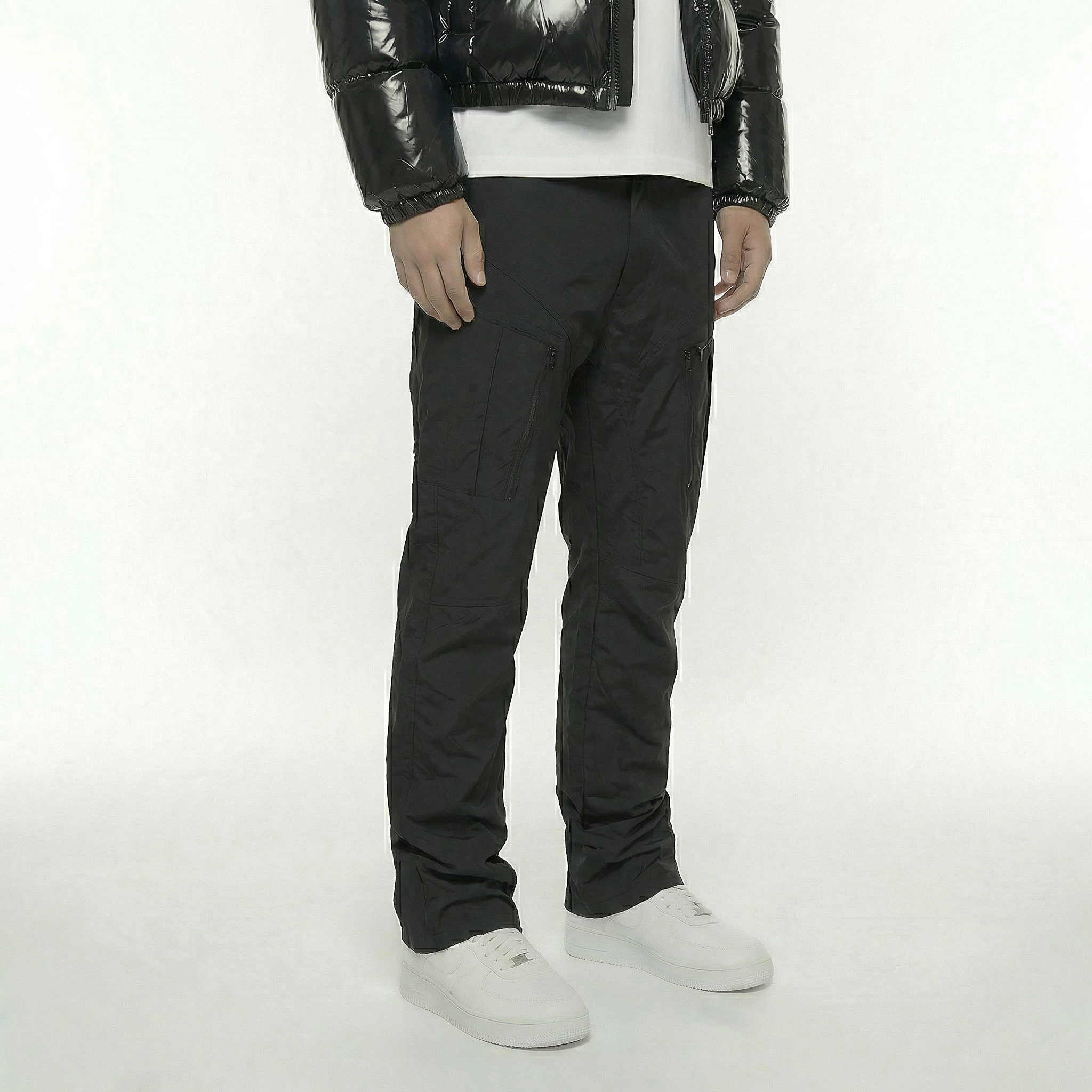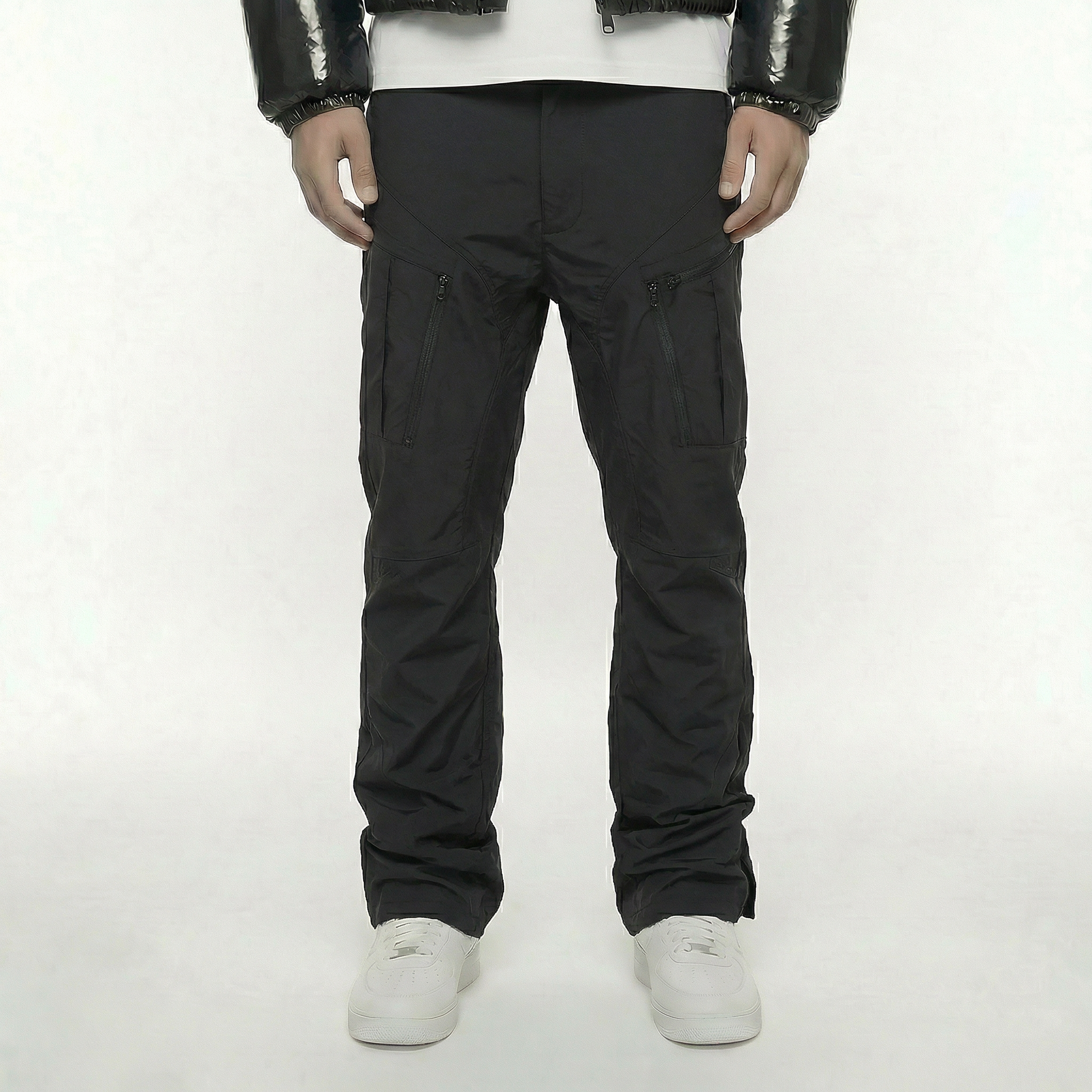 • cerniere all'apertura delle gambe per una vestibilità svasata.