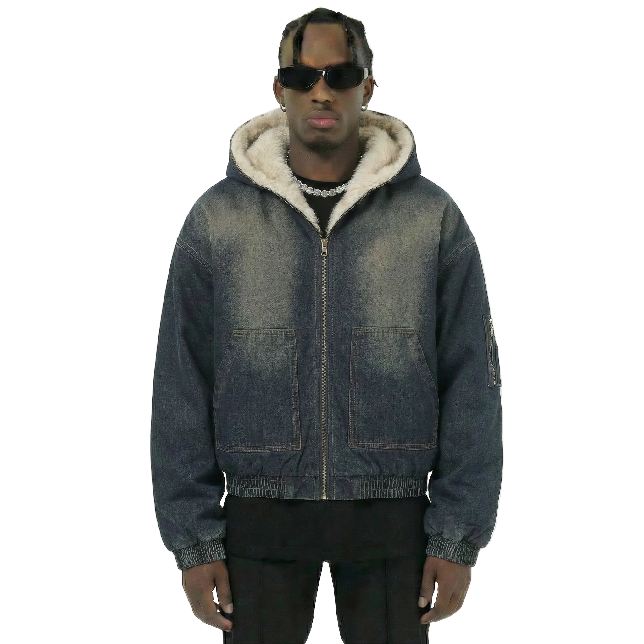 Home /NUOVI ARRIVI/ Giacca in denim squadrata con pelliccia | Denim lavato