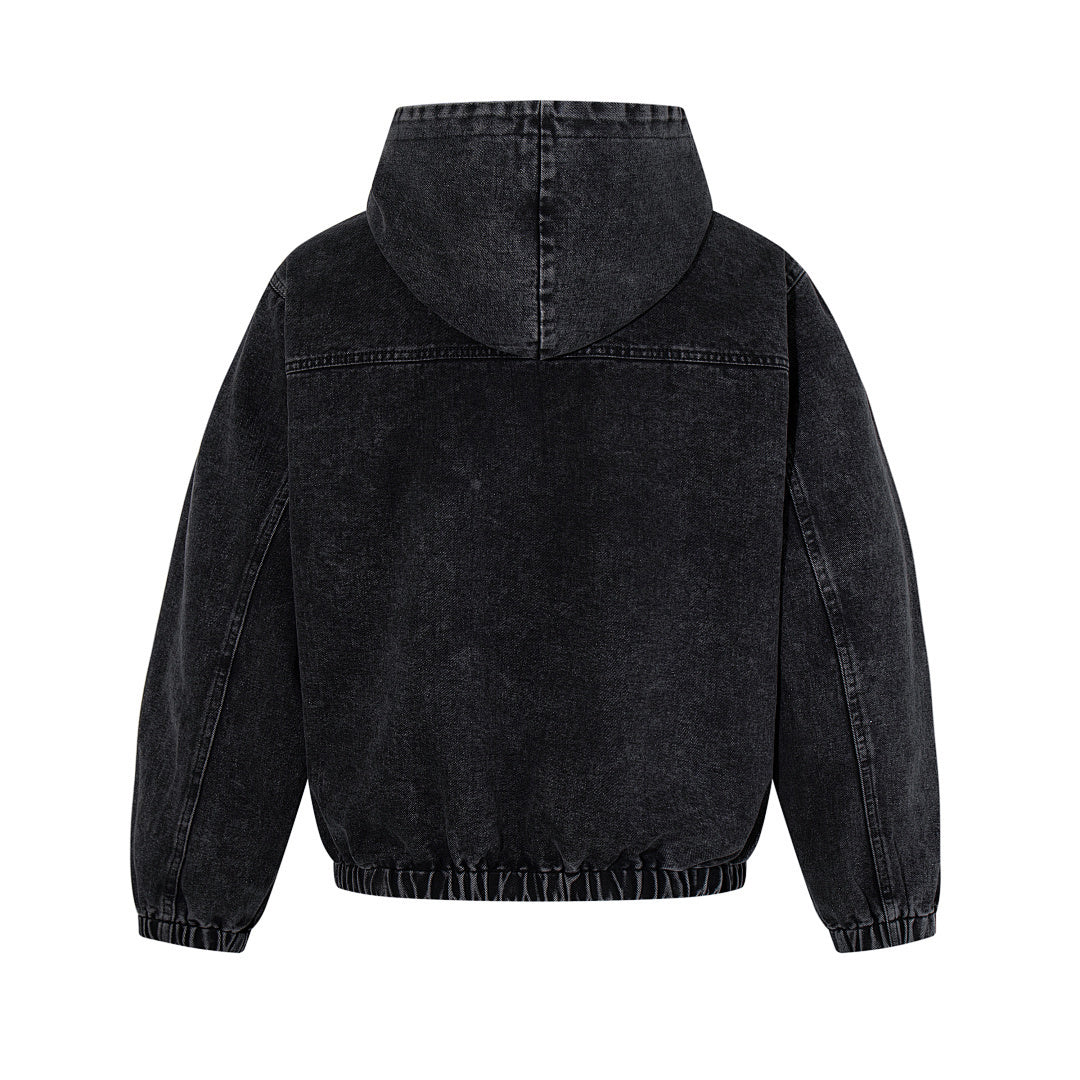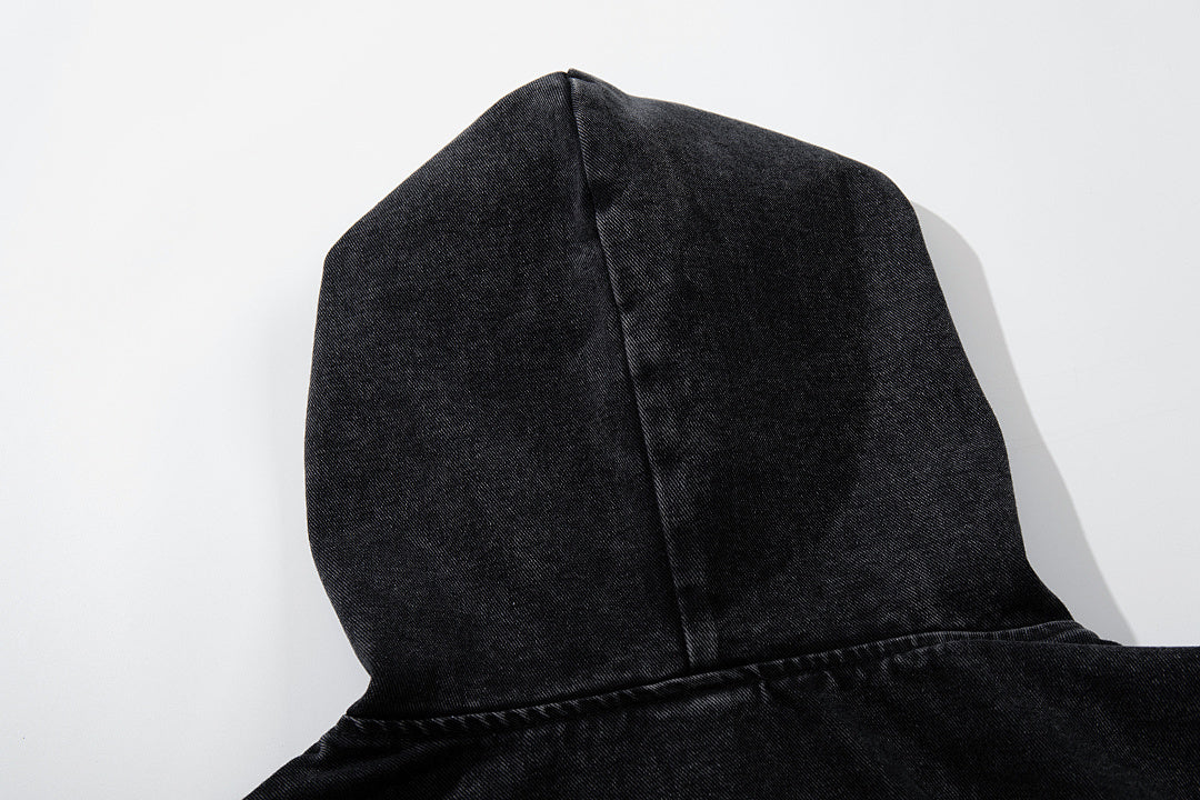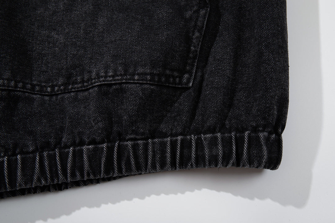 Effetto lavaggio: trattato con un lavaggio acido intenso per ottenere una patina color carbone vintage con cuciture ad alto contrasto.