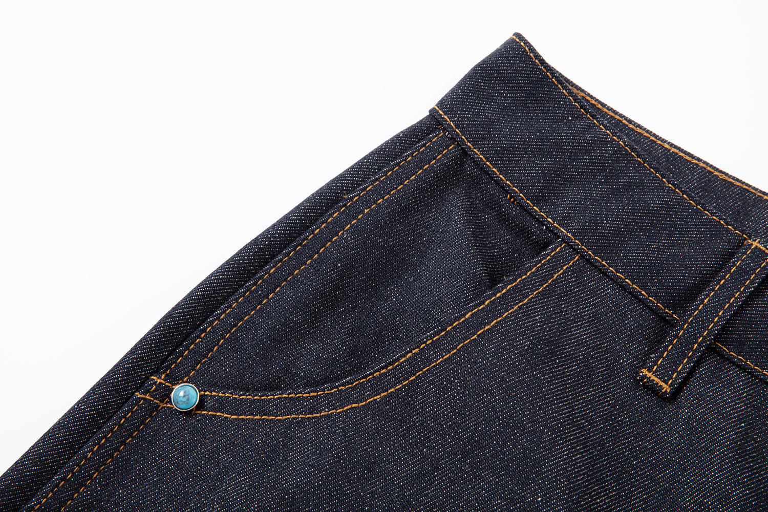 jordan in denim grezzo con bottoni in argento 925 e madreperla.