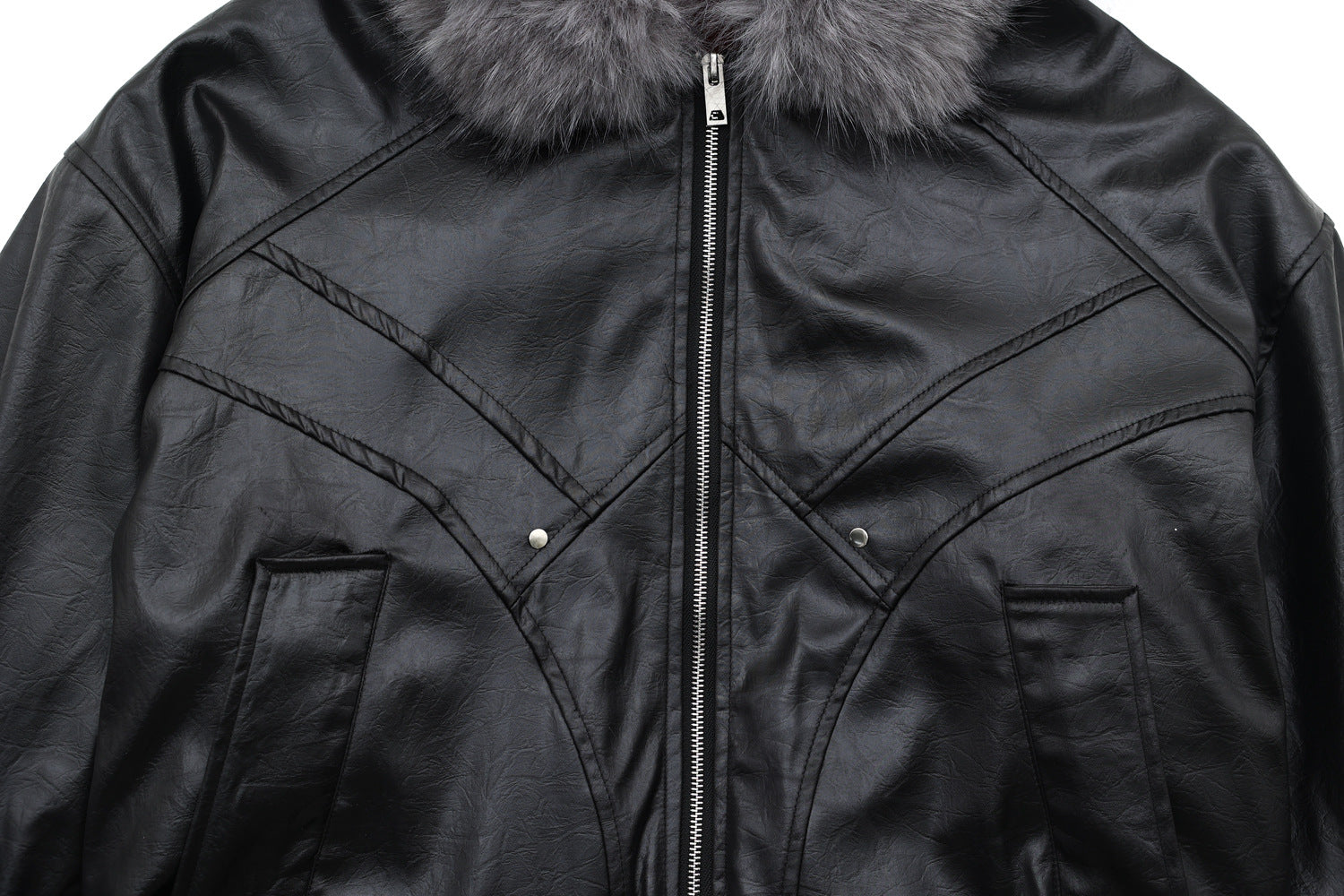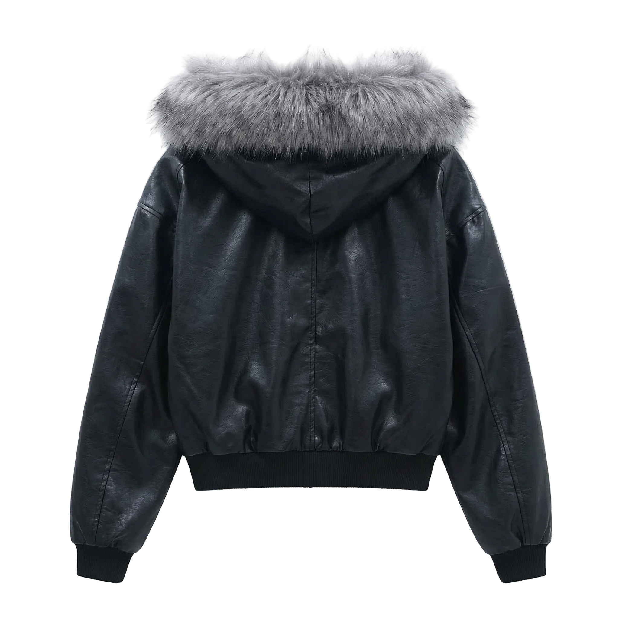 Home /TOPS/ Giacca in pelle squadrata con pelliccia | Nero corvino