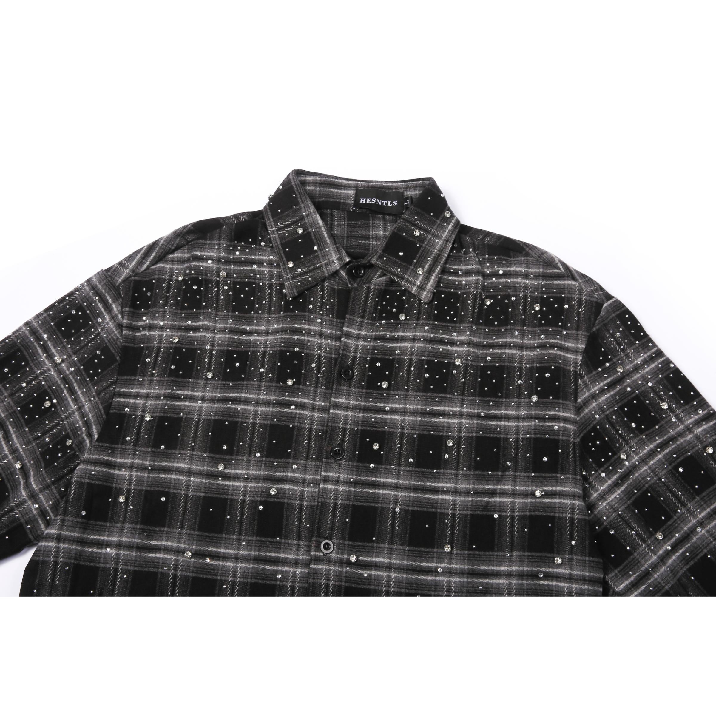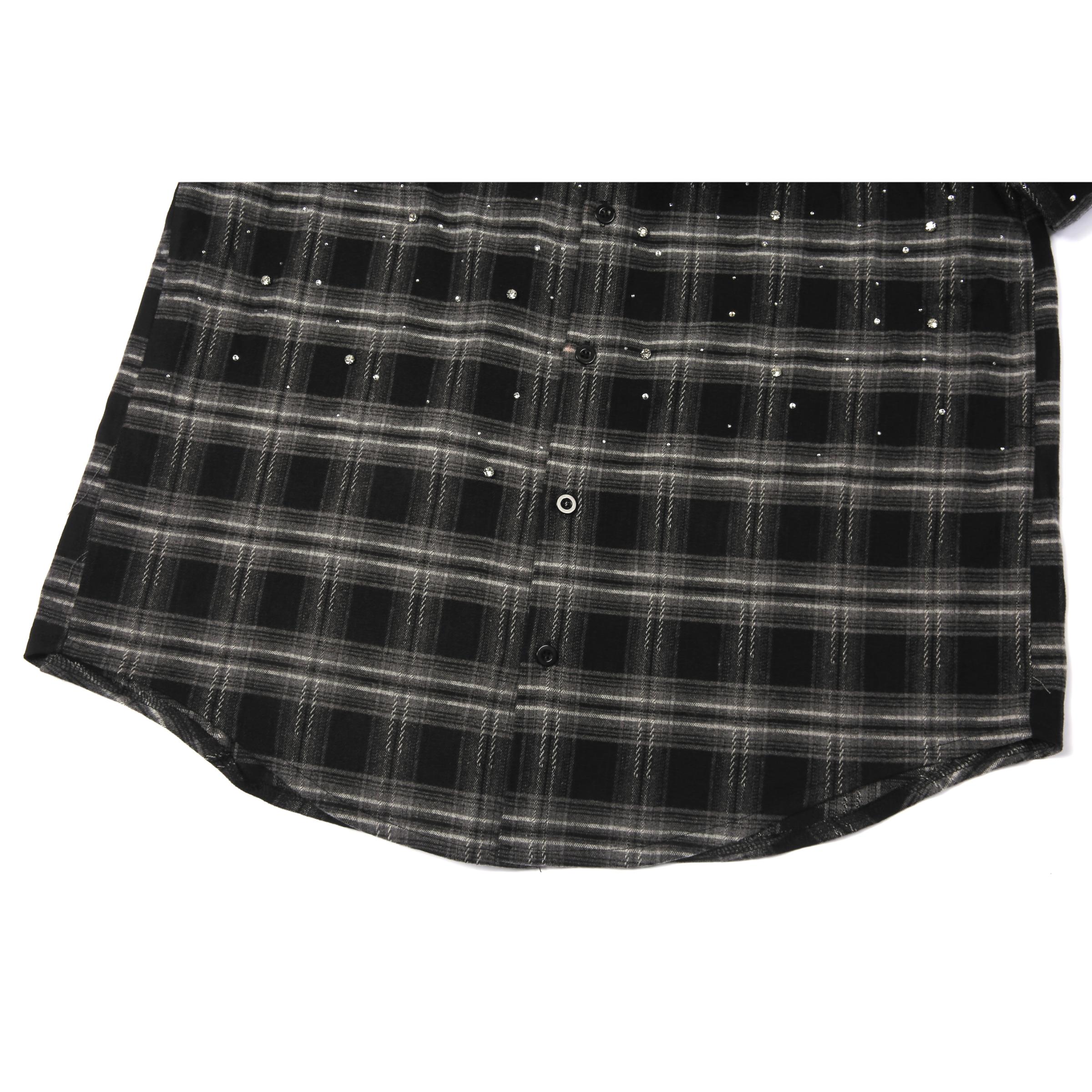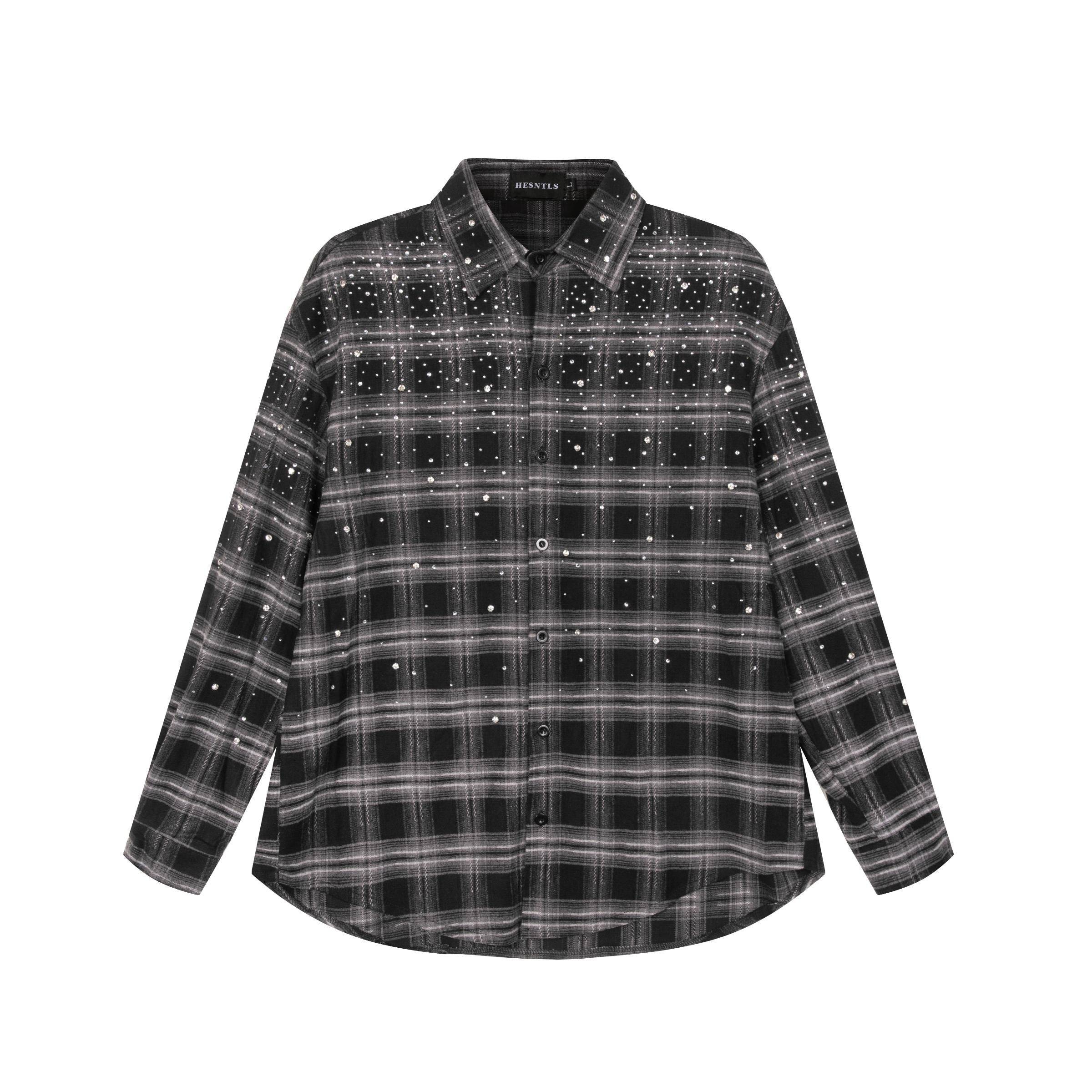 Realizzata in chambray di alta qualità, realizzata a mano e su misura per una finitura di alta qualità, la camicia Vintage VVS Flannel presenta intricate forme di pietre su tutta la superficie. Il capo perfetto per distinguersi, da abbinare a un look aderente o da indossare a strati per l'autunno.