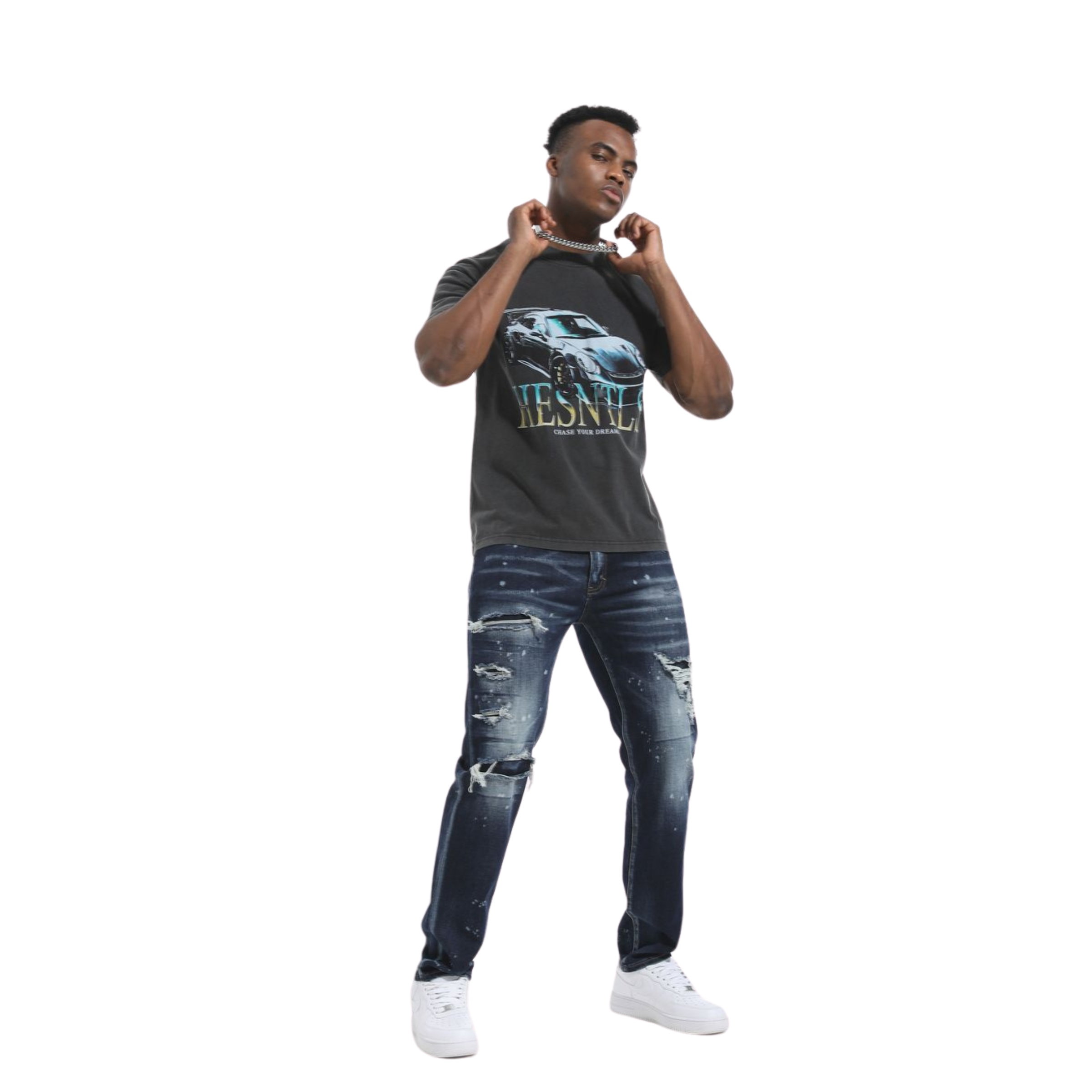 • Vestibilità slim, leggermente rilassata sulla coscia, che si assottiglia dal ginocchio in giù per una vestibilità perfetta