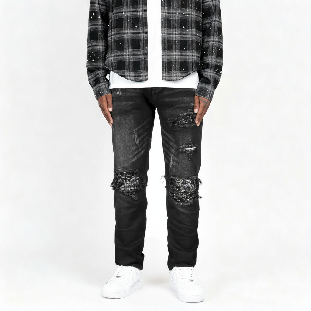 NV2 | Denim nero lavato con toppa Paisley nera