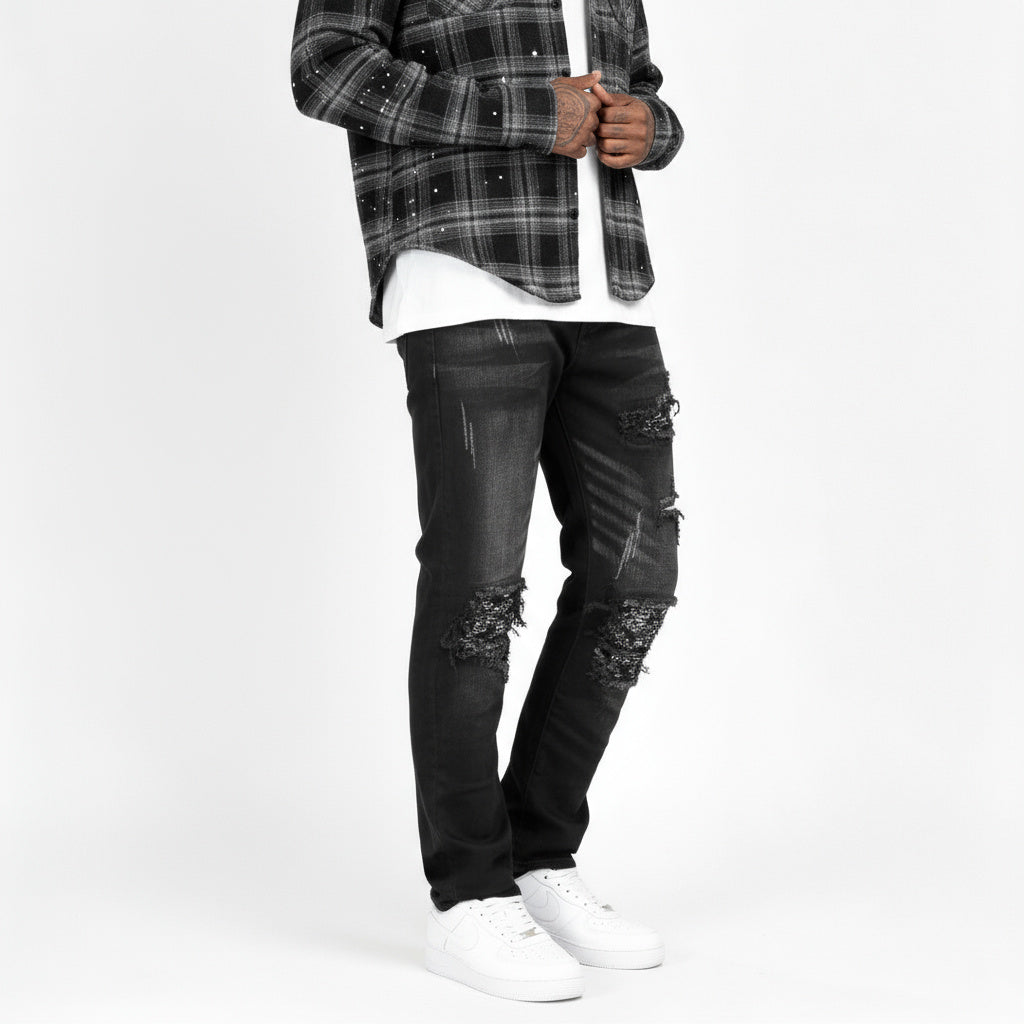 Home /Shop/ NV2 | Denim nero lavato con toppa Paisley nera